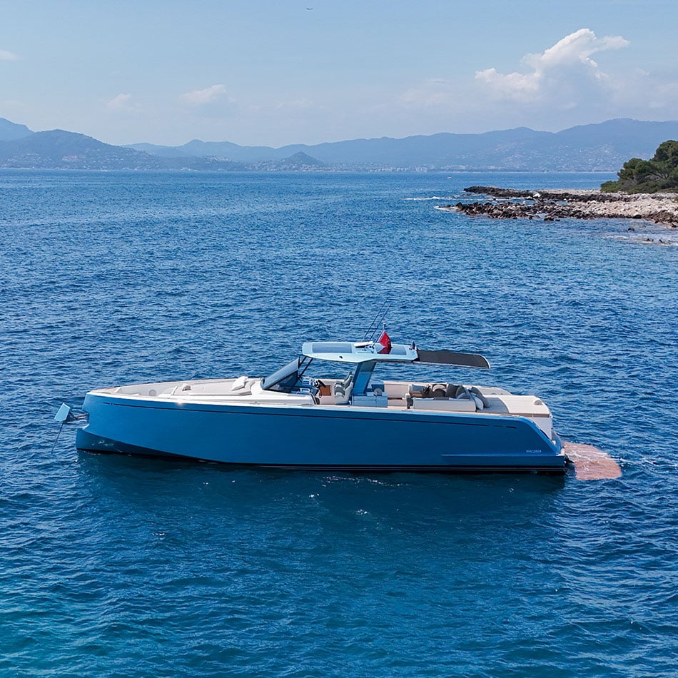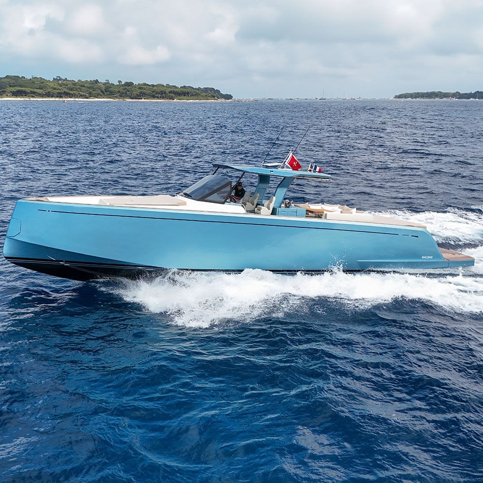 At 12.36 metres long and 3.60 metres wide, this exceptional yacht, built in 2022, combines performance and refinement. With a cruising speed of 29 knots and a top speed of 40 knots, it will take you from Cannes to Monaco or Saint-Tropez with remarkable ease and speed, allowing you to savour every second of your maritime escapade.
