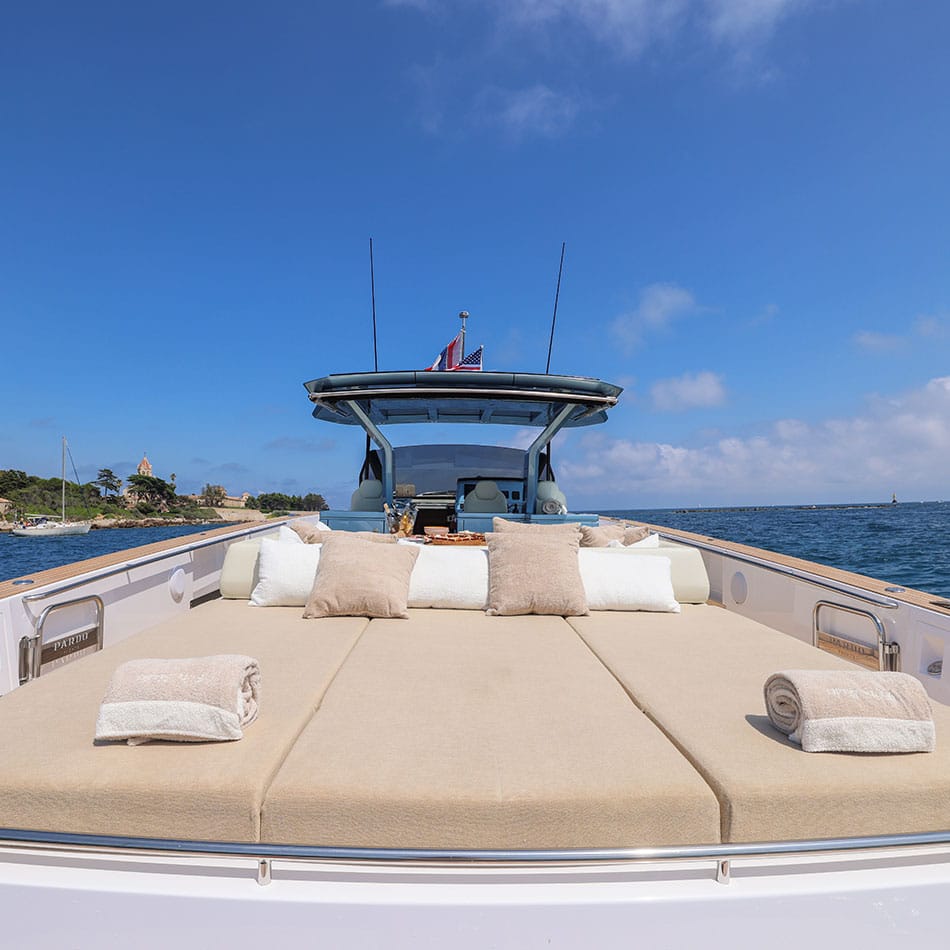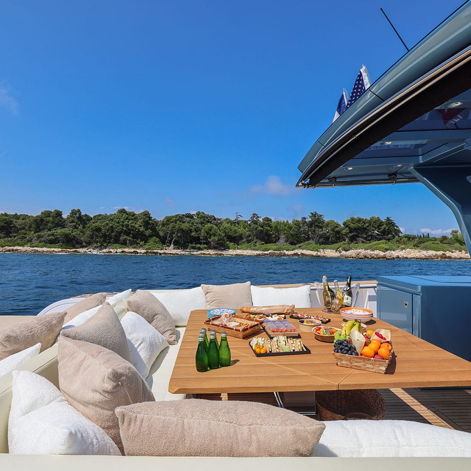 This spacious yacht can accommodate up to 11 guests on a cruise, guaranteeing moments of conviviality and pleasure. With two cabins – one double and one twin – the PARDO 50 also offers sleeping capacity for four guests, allowing you to extend your maritime escapades with peaceful nights on board. With a cruising speed of 30 knots and a top speed of 38 knots, you can travel the French Riviera in style and speed.
